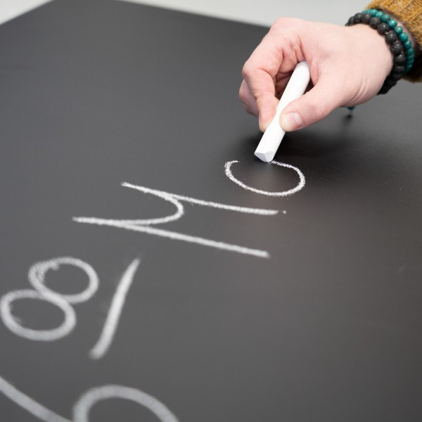 Nutzen Sie zum Beschreiben nur handelsübliche, feste Tafelkreiden und KEINE flüssigen Kreidemarker / Kreiden, die Fette und andere Zusätze besitzen!