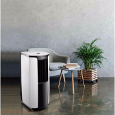 Die mobile Klimaanlage Sharp CVH7XR verfügt über horizontal und vertikal bewegliche Lamellen. Sie sorgen für eine gute Verteilung der Kühlluft. Der spezielle 'High Density Air Filter' entfernt Staub aus der Luft.Ferner ausgestattet mit einem System der Selbstdiagnose, Speicher, Timer und Standby Modus. Die Kindersicherung schützt vor ungewollten Änderungen der Einstellungen, das einfach zu bedienende LED-Display-Bedienfeld kann auch nachts ausgeschaltet werden.