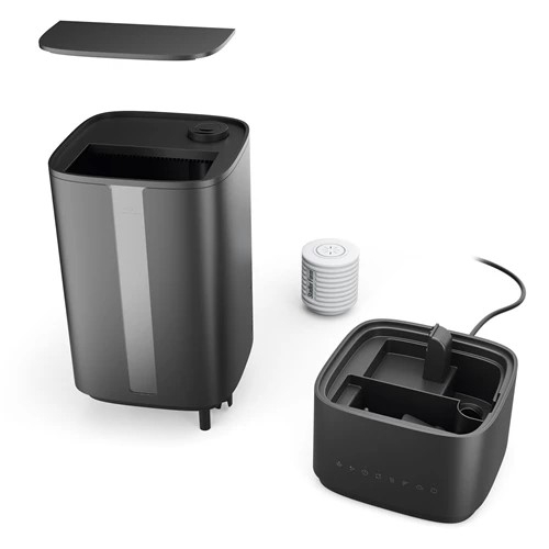 Oliver wird mit einer Fernbedienung geliefert und kann optional mit Zubehör wie Entkalkungskartuschen, Hygienetabletten, ätherischen Ölen sowie Reinigungs- und Entkalkungsmitteln erweitert werden. Dank der durchdachten Konstruktion ist der Wartungsaufwand minimal, und der Luftbefeuchter bleibt langfristig in einwandfreiem Zustand.