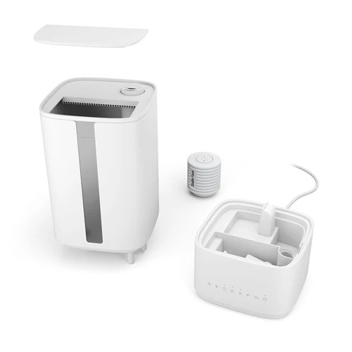 Oliver wird mit einer Fernbedienung geliefert und kann optional mit Zubehör wie Entkalkungskartuschen, Hygienetabletten, ätherischen Ölen sowie Reinigungs- und Entkalkungsmitteln erweitert werden. Dank der durchdachten Konstruktion ist der Wartungsaufwand minimal, und der Luftbefeuchter bleibt langfristig in einwandfreiem Zustand.