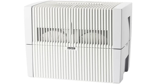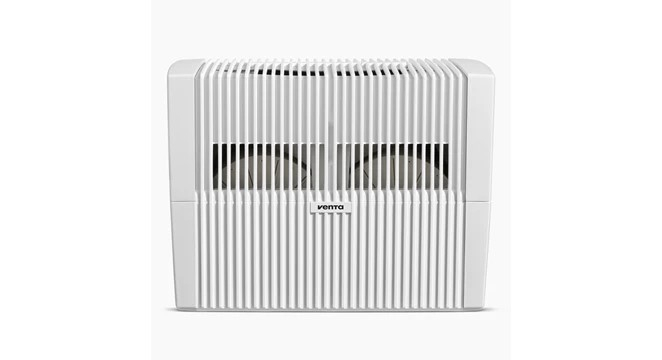 Der Venta LW45 Original (weiß) ist ein hochwertiger Luftbefeuchter Made in Germany, der durch seine Kombination aus Luftbefeuchtung und Luftreinigung überzeugt. Er arbeitet nach dem Prinzip der hygienischen Kaltverdunstung und schafft ein ausgeglichenes Raumklima für Wohn-, Schlafzimmer und Arbeitsräume. Der Luftwäscher LW45 Original sorgt für spürbar frische und gesunde Luft – ganz natürlich, leise und energieeffizient. Unterstützt er nicht nur die optimale Luftfeuchtigkeit, sondern reduziert gleichzeitig Schadstoffe, Staub und Allergene aus der Raumluft mit dem innovativen Venta-Kaltverdunstungsprinzip. Das pflegeleichte Gerät arbeitet ohne Filter oder Befeuchtungsmatten und eignet sich für Räume bis 55 m² (Befeuchten) bzw. 30 m² (Reinigen). Die Bedienung ist kinderleicht: Ein-/Aus-Schalter und drei Leistungsstufen. Ein 10-Liter-Wassertank wird per LED-Statusanzeige sichtbar gemacht. Der Stromverbrauch liegt in der höchsten Stufe unter 8 Watt.