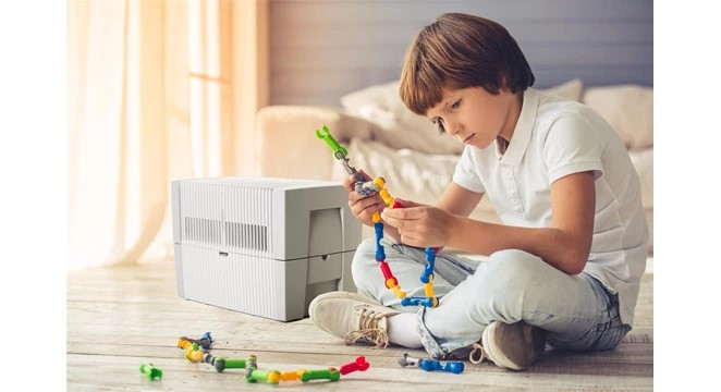 Der Luftbefeuchter arbeitet mit Leitungswasser und setzt auf Kaltverdunstung – hygienisch, zuverlässig und ohne Kalkablagerungen. Luft wird angesaugt, durch rotierende Lamellen im Wasser geleitet und wie „gewaschen“. Selbst ultrafeine Partikel bis 10 µm werden gebunden. Gleichzeitig verdunstet reines Wasser an der Lamellenoberfläche und verteilt sich im Raum.  LW45 sorgt für eine hygienische Befeuchtung der Innenraumluft.