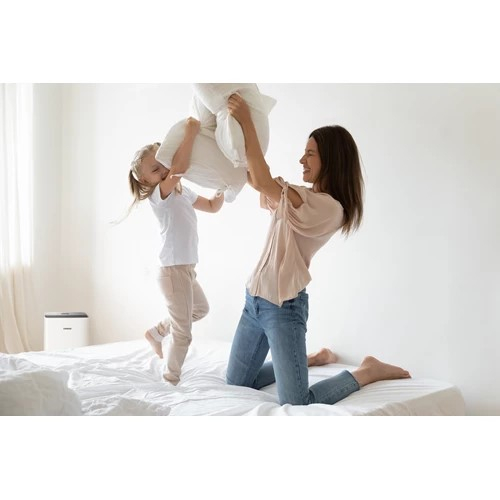 Emma sorgt auch beim Schlafen der Familie für ein gutes Raumklima. Wenn Sie den Luftentfeuchter im Schlafzimmer verwenden, ist es kein Problem, den Luftentfeuchter nachts laufen zu lassen, da Emma mit einer intelligenten Schlafmodusfunktion ausgestattet ist, die einfach und schnell aktiviert werden kann. Wird diese Funktion genutzt, läuft der Luftentfeuchter mit niedriger Lüftergeschwindigkeit und einem Geräuschpegel von nur 38 dB(A).